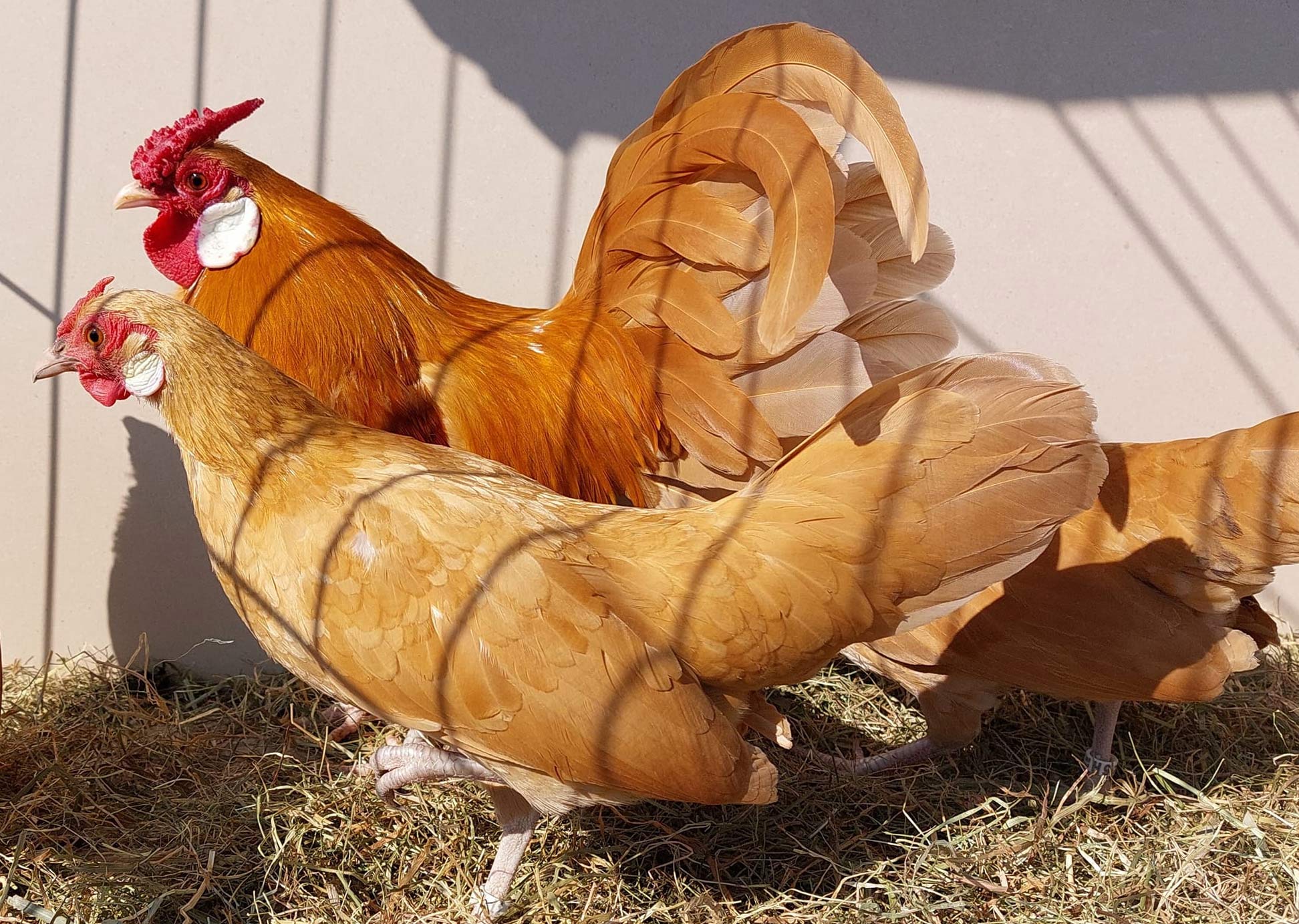 Buff Rosecombs owned by Ákos Lázók   Buff Rosecomb hens owned by Ákos Lázók